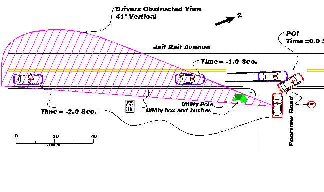 Show the jury what your client couldn't see with a line of sight exhibit. Exhibit-A will hire a driver surrogate to determine the appropriate eye height. With the "rod" set at eye height, site inspections depicting obstructed views are precisely captured.